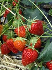 estolhos de morangueiros, alhos e cebolas.
